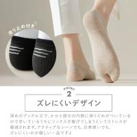 深めのアンクル丈で、かかと部分の内側に滑りどめがついているので