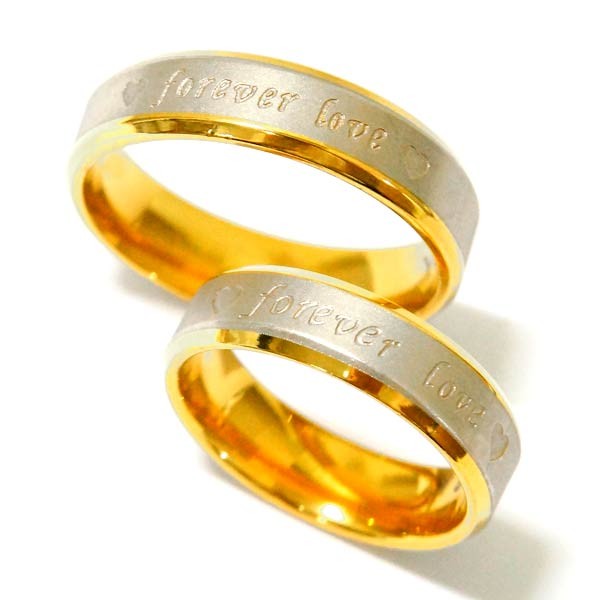 forever love 永遠の愛 メッセージ ツインハート ゴールドカラー ステンレス ペアリング 「6mm幅/4mm幅」
