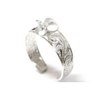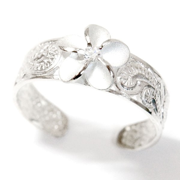 ハワイアンジュエリー トゥーリング プルメリア 花 カレイキニ 波 透かし彫り クリアジルコニア レディース シルバー925