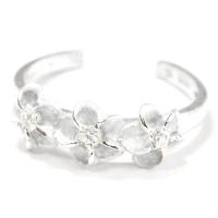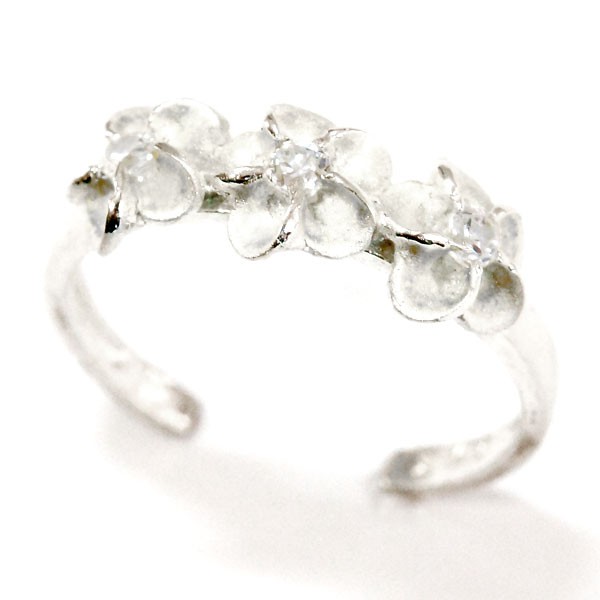 ハワイアンジュエリー トゥーリング 3プルメリア 花 クリアジルコニア レディース シルバー925