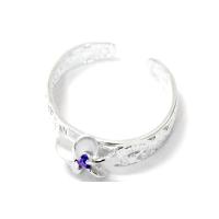 ハワイアンジュエリー トゥーリング プルメリア 花 パープルジルコニア カレイキニ 波 透かし彫り レディース シルバー925