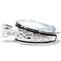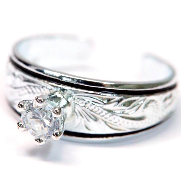 ハワイアンジュエリー トゥーリング ピンキーリング クリアジルコニア 立て爪 波彫り ブラックエナメル 2ライン レディース シルバー925
