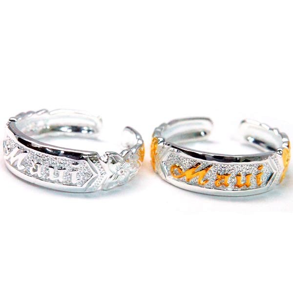 ハワイ諸島の1つマウイ島の名前を使った「Maui」文字入りハワイアンジュエリーレディースシルバー925トゥーリングです。メインとなるMaui文字はレイズドと呼ばれる浮き彫り技法で立体感を出したデザインで、文字の周囲に無数に付けられた凹凸が光を反射してキラキラと輝きを放ってくれます。Maui文字の両側にはプルメリア&スクロールが刻み込まれリングデザインに華やかな彩りを添えています。リング全体には「プラチナ仕上げ」と呼ばれるホワイトロジウムのコーティングで高級感をプラス。内側には高品質なシルバーの証「925」の刻印入り。ハワイの魅力を十分に感じさせてくれるこちらのトゥーリングはピンキーリングとしても使えるお得な2WAYですのでひとつ持っているだけでとても重宝するハワイアンジュエリーレディースシルバー925トゥーリングです。
