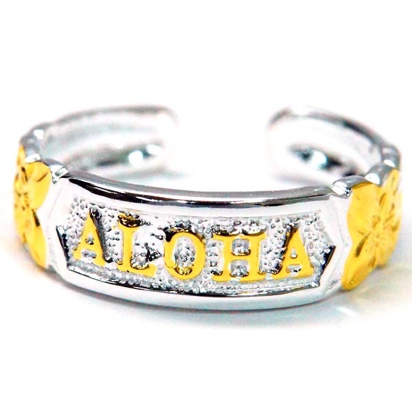 ハワイアンジュエリー トゥーリング ピンキーリング ALOHA アロハ文字 プルメリア 花 波 イエローゴールド レディース シルバー925