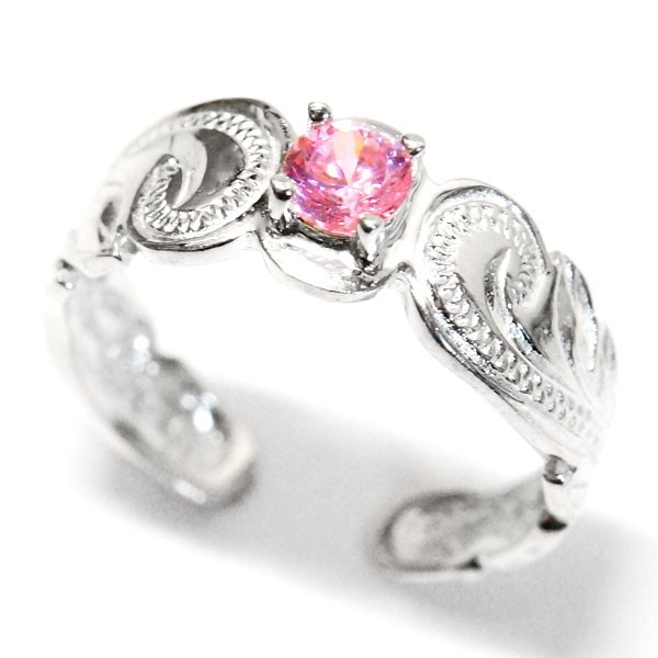 ハワイアンジュエリー トゥーリング ピンキーリング ピンクジルコニア スクロール 波模様 カットアウト レディース シルバー925