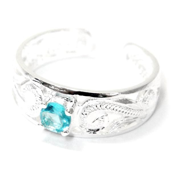 ハワイアンジュエリー トゥーリング スクロール 波 透かし彫り ライトブルージルコニア レディース シルバー925
