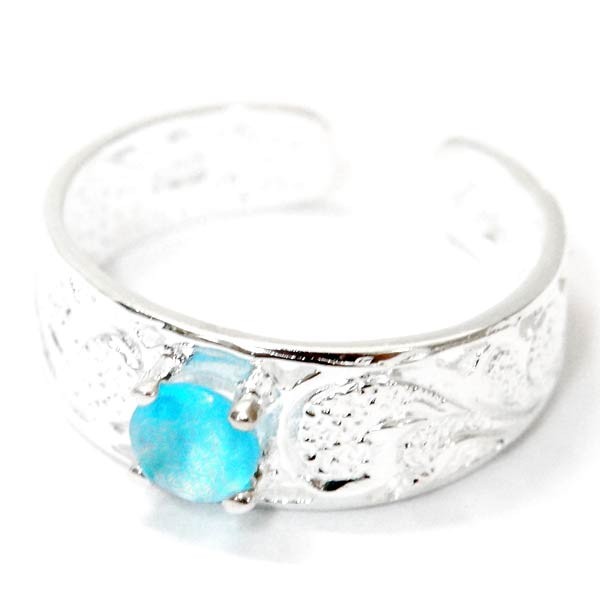 ハワイアンジュエリー トゥーリング カレイキニ 波 透かし彫り ライトブルージルコニア レディース シルバー925