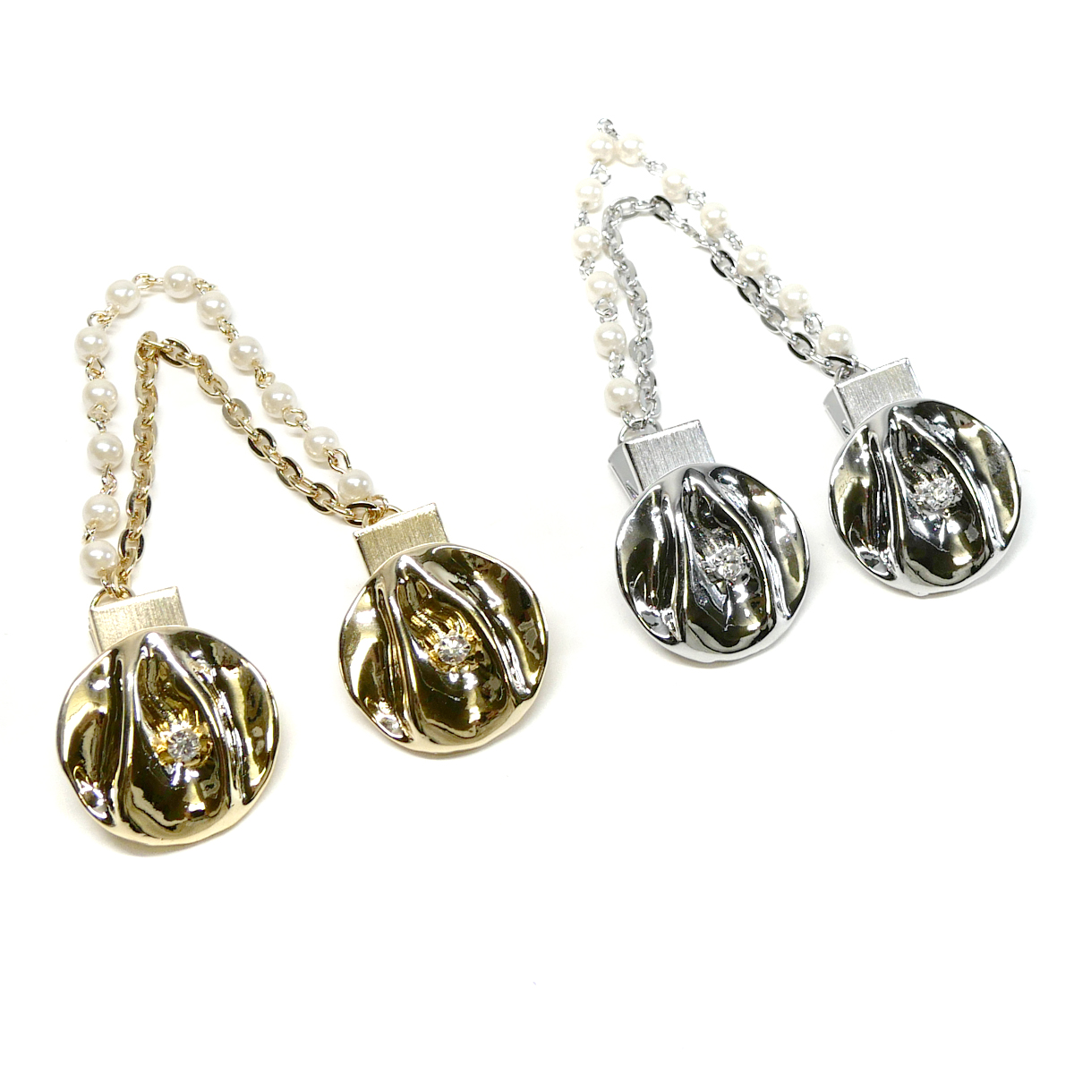 ストールクリップ カーディガンクリップ メタル ラウンド ウェーブ カットビーズ パールチェーン繋ぎ マフラークリップ