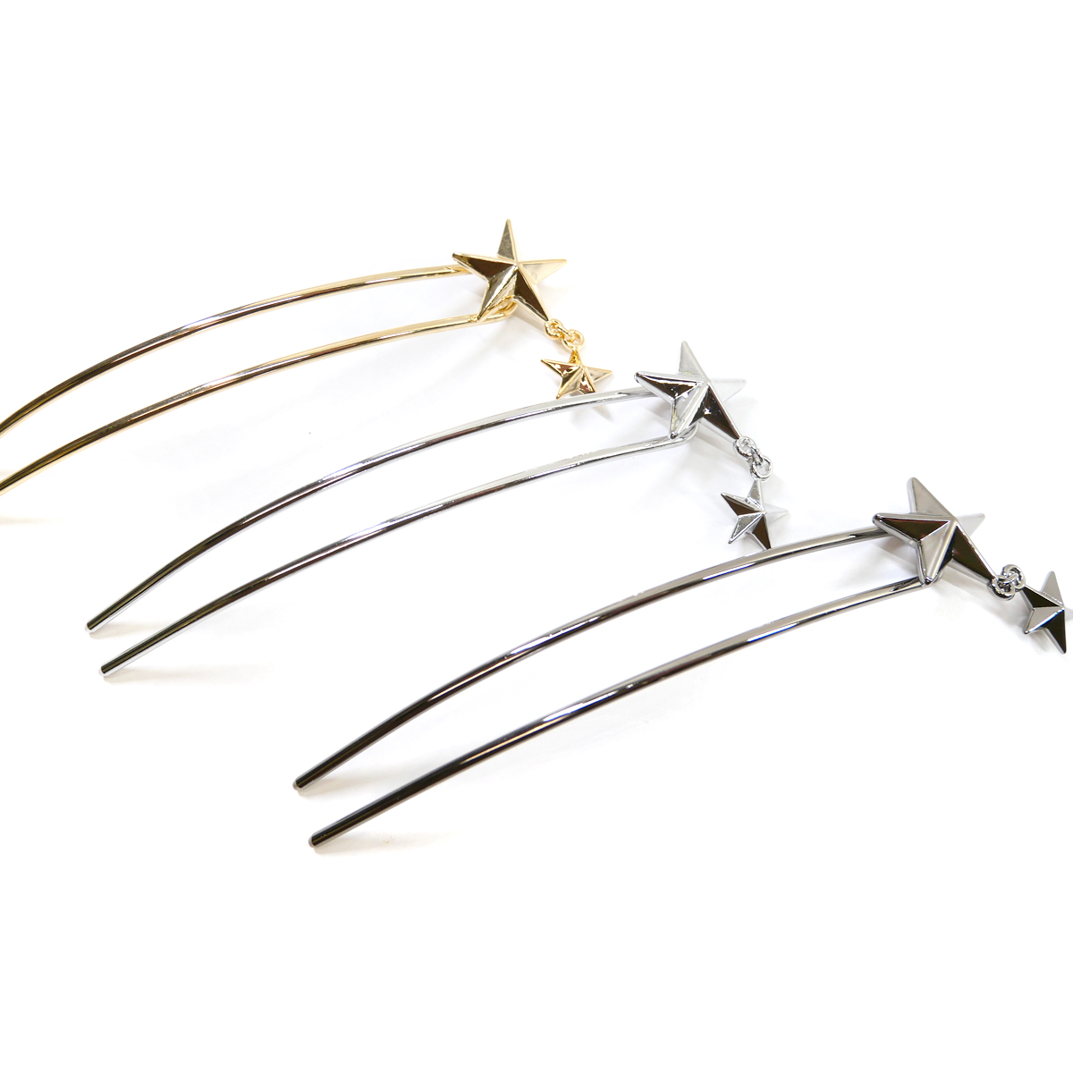 かんざし 簪 スター 二本足 ロング 髪飾り ゴールド色 ロジウム色 ブラック色 カジュアル