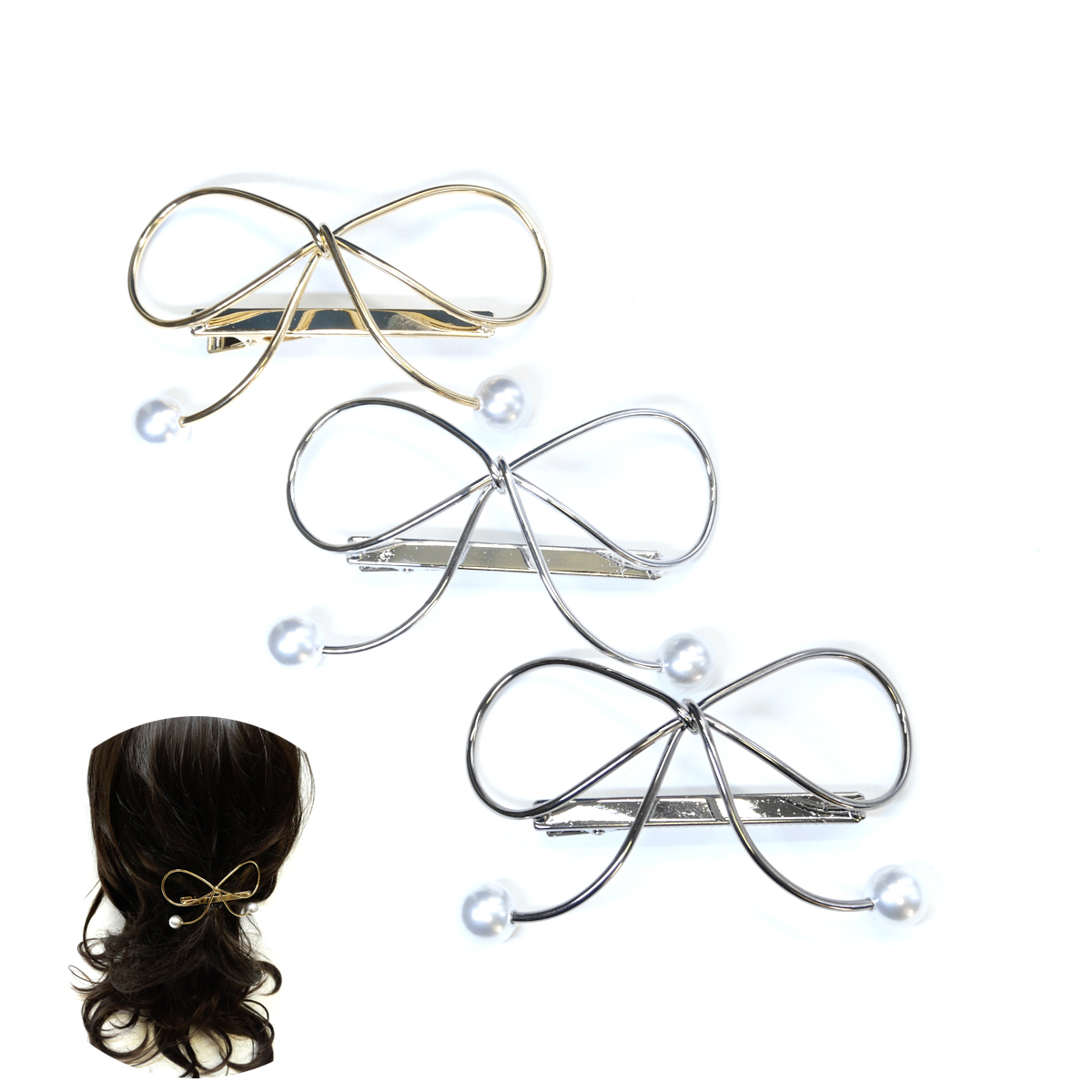 ヘアクリップ レディース ヘアアクセサリー クリップ式 ビッグ リボン パール 曲げ加工