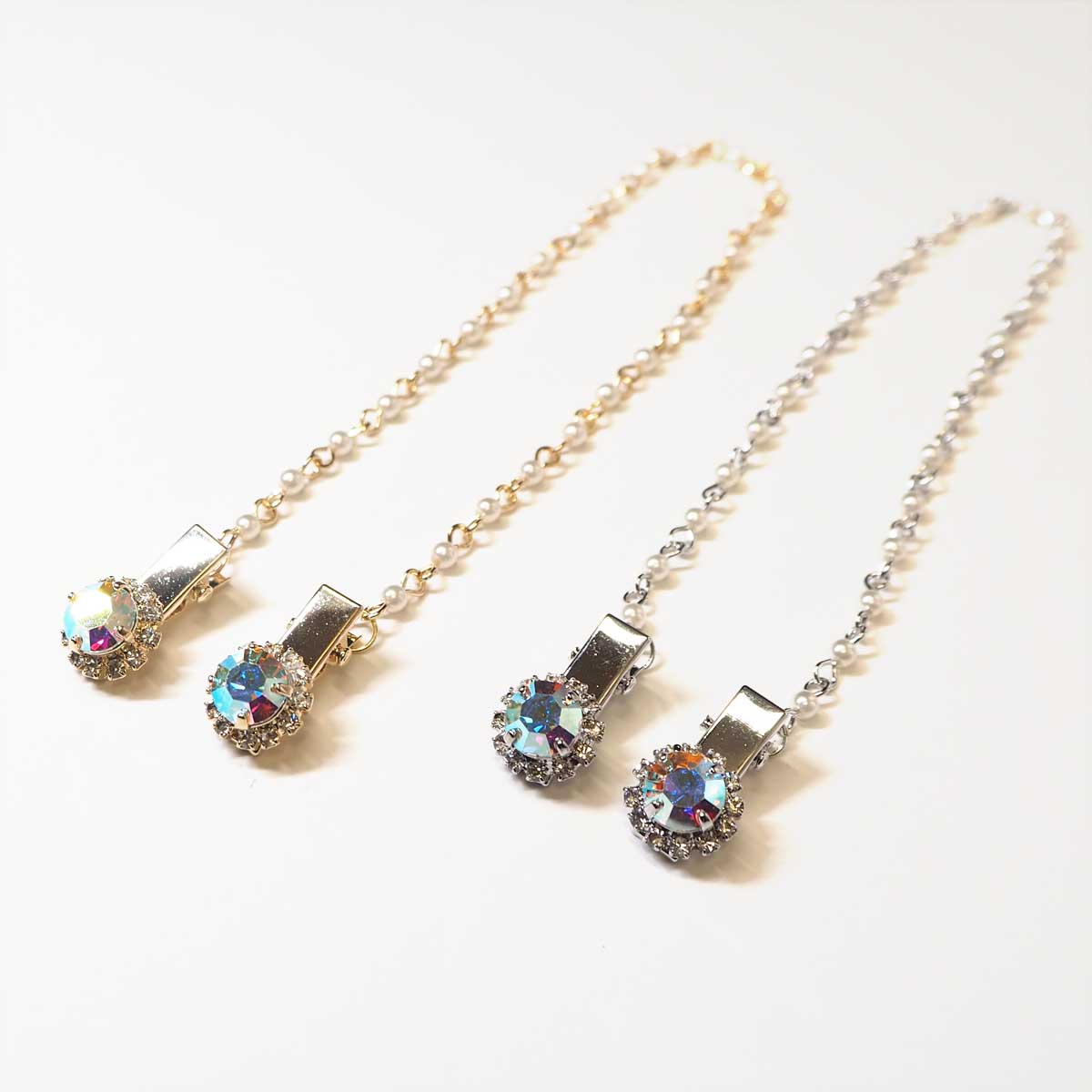 ハットチェーン 帽子クリップ レディース ジュエリー調 オーロラカラー ベビーパール 落下防止