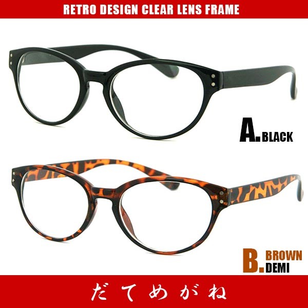 □流行のボストンフレームで使いやすさのオーバル感をプラス。今年おすすめな紫外線カットのクリアレンズ(伊達メガネ)。メンズ、レ ディースはもちろん顔のタイプも問わない万能スタイルだから人を選びません。