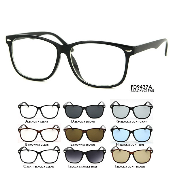 伊達メガネ サングラス FD9437 ライトカラー メンズ レディース 共用 UVカット ビッグフレーム スクエア ウェリントン