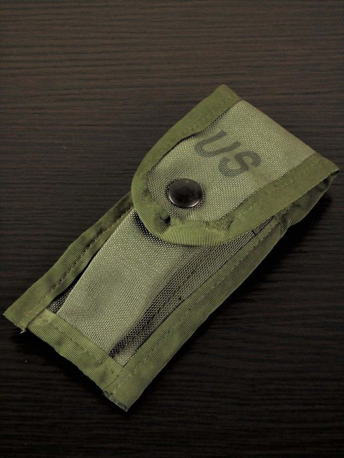 M-9マガジンポケットがデッドストックで入荷しました。 ベレッタ用9mmマガジンを一つ収めることが出来る防水加工がされたポーチで、かつてはミリタリーショップの定番アイテムでしたが、最近は放出も少なくなり、一部ではちょっとしたビンテージ扱いになりつつあります。 プライスもユーズドで千円前後、新品では二千円前後はしているのではないでしょうか? 立体成形されたベルクロ留めのモデルでは、お気に入りのファッションにマッチしないという方も多いと思います。 この機会に是非どうぞ。 背面に付いている二個のスライドキーパーでベルトに装着することが可能です。 フォールディングナイフやマグライト、ライターにも最適ですよ。 新品 ナイロン製 全長(オープン時):約25cm, 全長(クローズ時):約15.7cm, 幅:約6.8cm *画面上と実物では多少色具合が異なって見える場合もございます。 スペックは防水用のラミネートの上にスタンプされていますので、経年により滲んで殆ど読めない個体もございます。 大半は1996年から01年コントラクト分となりますが、商品の特性としてご理解いただきますようお願いいたします。 ナイロン特有のにおいがある場合がございます。