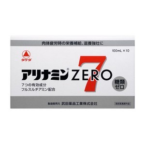 | 成分・分量 | 1ビン(100mL)中 | 成分 | 含量 | | フルスルチアミン塩酸塩(ビタミンB1誘導体) | 2.5mg | | リボフラビンリン酸エステルナトリウム(ビタミンB2リン酸エステル) | 2.54mg | | ピリドキシン塩酸塩(ビタミンB6) | 10mg | | ニコチン酸アミド | 25mg | | L-アスパラギン酸ナトリウム | 125mg | | タウリン(アミノエチルスルホン酸) | 1000mg | | 無水カフェイン | 50mg | 添加物 クエン酸水和物、エリスリトール、スクラロース、DL-リンゴ酸、アセスルファムカリウム、安息香酸Na、没食子酸プロピル、香料、エタノール、プロピレングリコール |
