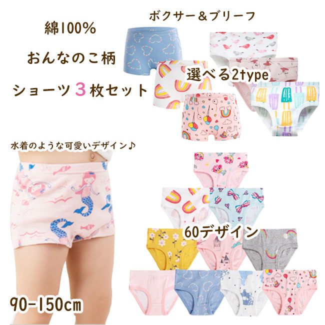 子供 パンツ 3枚セット 綿100% キッズ 女の子 ボクサー ブリーフ ショーツ 下着 肌着 100cm 110cm 120cm 130cm 140cm 150cm 総柄 acefad ショーツ