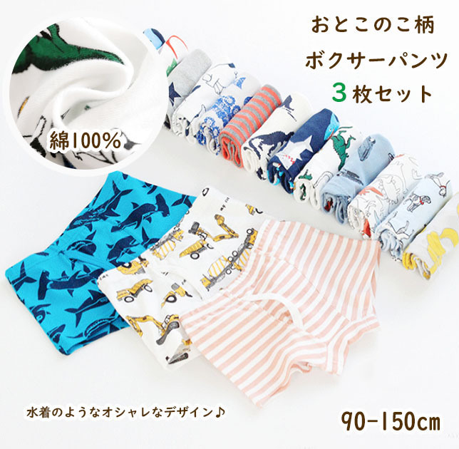 子供 ボクサー パンツ 3枚セット 綿100% キッズ 男の子 ショーツ 下着 肌着 100cm 110cm 120cm 130cm 140cm 150cm 恐竜 車 宇宙 総柄 acefad 爆買
