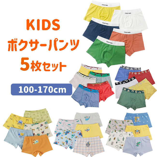 男の子 ボクサー パンツ 5枚セット キッズ 子供 ボーイズ ショーツ 無地 シンプル 下着 肌着 大きいサイズ 100 110 120 130 140 150 160 170cm インナー 爆買