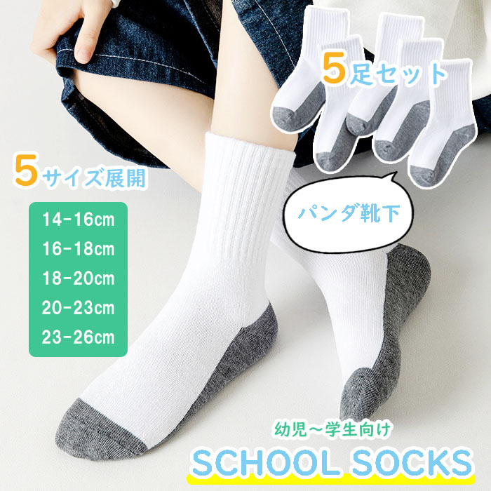 パンダ ソックス 子供スクール 靴下 白 5足組 無地 クルー キッズ ジュニア オールシーズン 学生 幼児 冠婚葬祭 14 15 16 17 18 19 20 21 22 23 24 25 26cm 爆買
