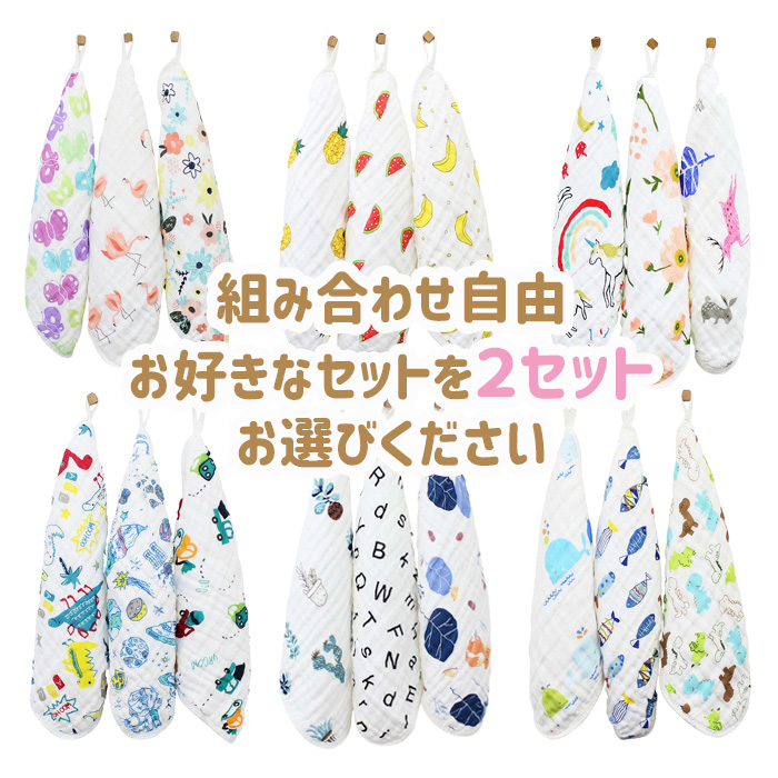 ループ付き タオル 6枚セット ネームタグつき モスリンコットン100% ハンドタオル ガーゼ 手拭き 保育園 幼稚園 キッチン 入園グッズ 子ども 幼児 爆買
