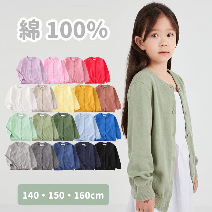 即納 Uネック カーディガン 子供 ジュニア 綿100% 女の子 長袖 シンプル 無地 140 150 160cm おしゃれ プレゼント プチギフト 秋冬春 爆買
