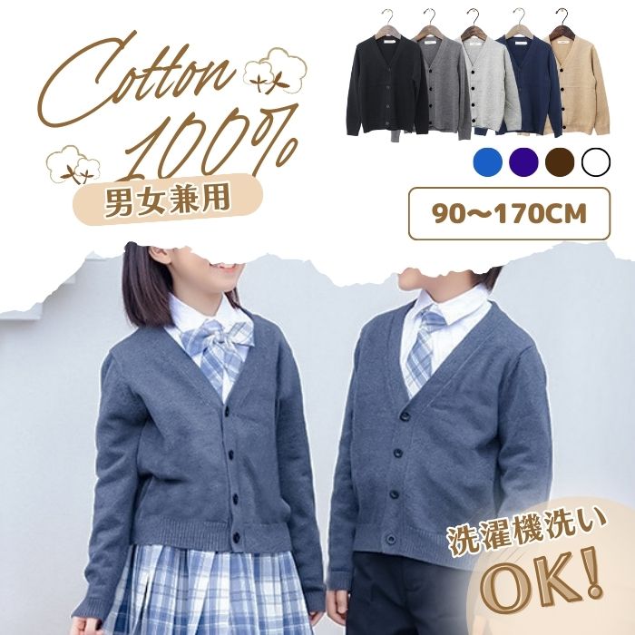 Vネック カーディガン 中厚 キッズ 子供 男女兼用 スクール 女の子 男の子 長袖 フォーマル 9カラー 90 100 110 120 130 140 150 160 165 170cm 幼稚園 小学生