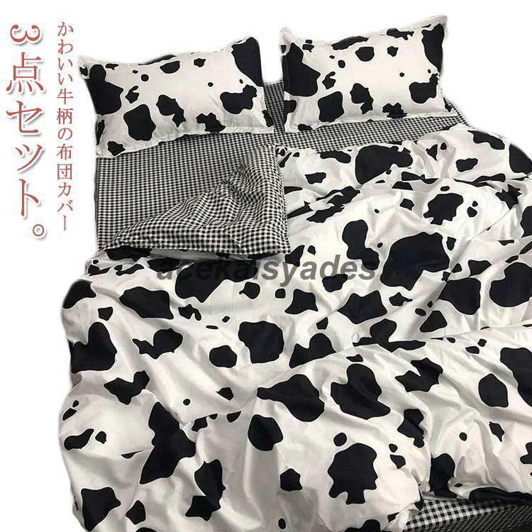 布団カバーセット シングル ベッドカバー 布団カバー 3点セット 牛柄 カウ柄 可愛い 寝具カバーセット セミダブル ベッドカバーセット 掛け布団カバ