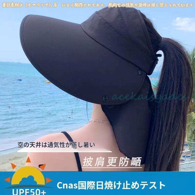 2024年新作 空トップ帽子 女性用 首を保護する日よけ帽 大きなつば 結ぶポニーテール用 日焼け止め帽子 紫外線防止 太陽帽子 リボン付き おしゃれ 夏用