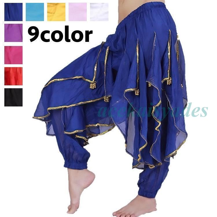 ベリーダンス衣装 ボ ハーレムパンツ アラジンパンツ サルエルパンツ レディース 女性用 ビーズ付き シフォン ウエストゴム 長ズボン ロングパ