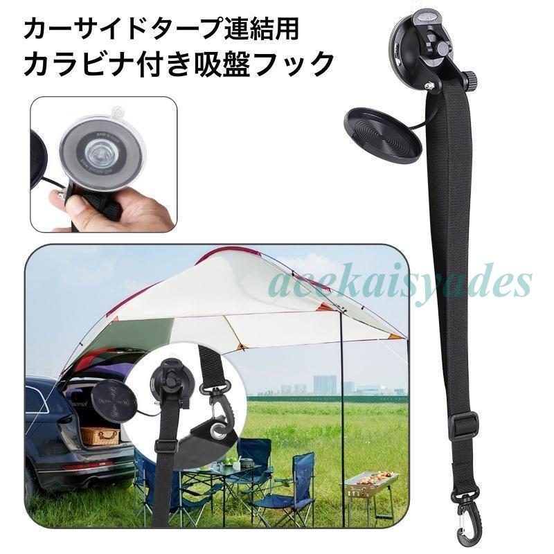 吸盤フック カーサイドタープ連結用 カージョイント 強力 自動車用 吸盤カバー付き カーサイドオーニング テント サンシェード固定 荷物締め付け 便利