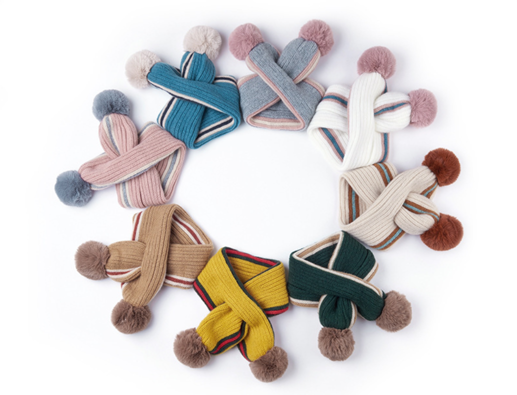 マフラー ニットマフラー キッズマフラー 防寒対策 キッズ 子供 男の子 女の子 ファッション小物 ストライプ ポンポン おしゃれ かわ