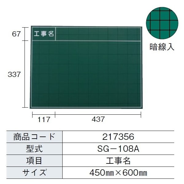MYZOX マイゾックス ハンディスチールグリーンボード SG-108A (工事名) 450mm x 600mm 現場写真工事用暗線入