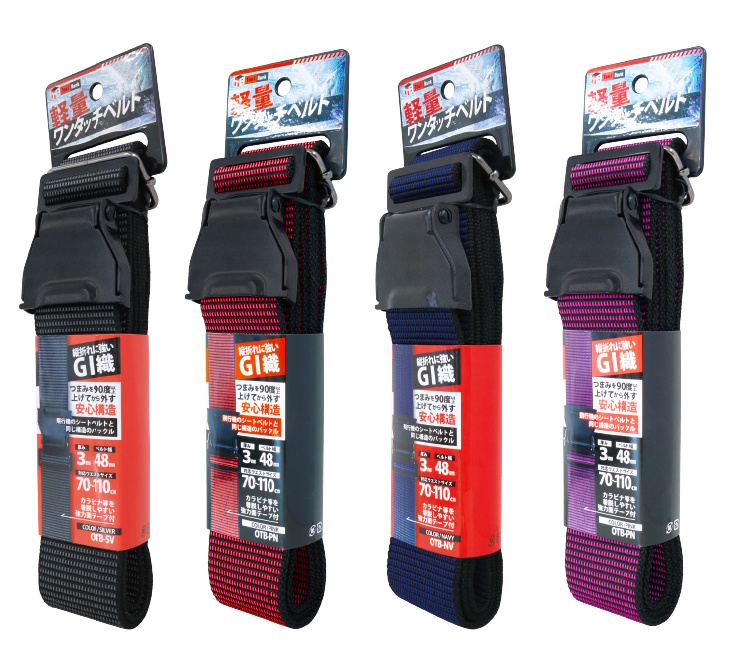 ツールバンク 軽量ワンタッチベルト GI織 OTB-SV(シルバー) OTB-RE(レッド) OTB-NV(ネイビー) OTB-PN(ピンク) 幅48mm 厚み3mm ToolBank