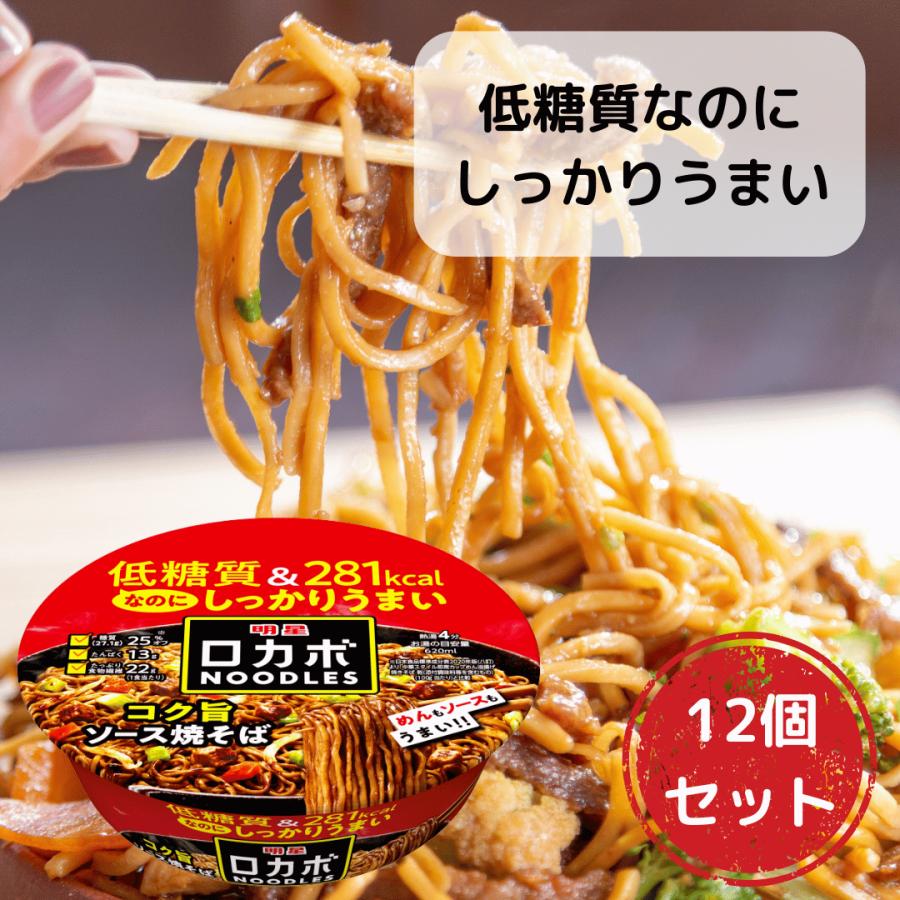 明星 ロカボNOODLES コク旨ソース焼そば 281kcal 糖質25%オフ 低糖質なのにしっかりうまい たっぷり食物繊維 カップ麺 12個入
