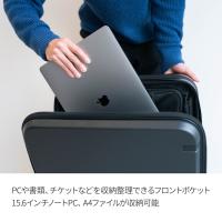 ●5〜7泊程度の出張や旅行に使いやすいサイズ● フロントポケットPCや書類、チケットなどを収納整理できるフロントポケット。