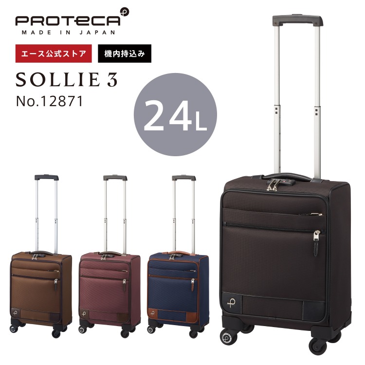 商品名 | キャリーバッグ 機内持ち込み ソフト プロテカ/PROTECA ソリエ3 SSサイズ 24リットル 日本製 キャスターストッパー付き キャリーケース 12871 |