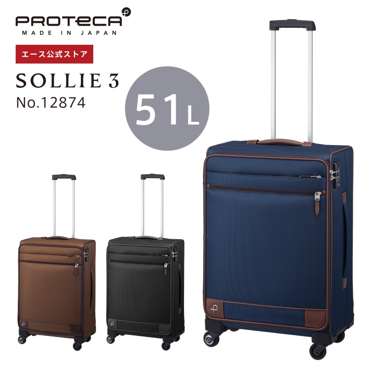 | 商品名 | エース公式 キャリーバッグ Lサイズ ソフト プロテカ/PROTECA ソリエ3 51リットル 日本製 キャスターストッパー付き キャリーケース 12874 |