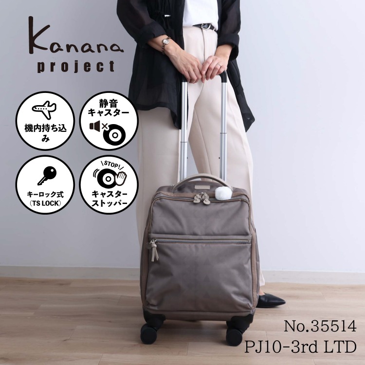 商品名 | キャリーバッグ Kanana project カナナ プロジェクト PJ-10-3rd Limited 国内100席以上・国際機内持込み 機内持ち込み キャスターストッパー 静音キャスター TS南京錠 双輪キャスター No.35514 |
