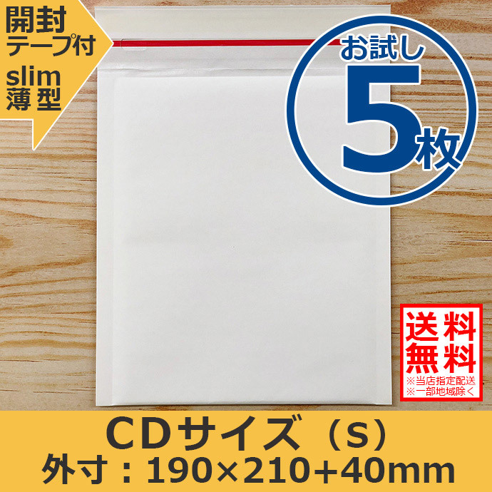 クッション封筒 CDサイズ お試し5枚セット S 開封テープ付 スリム プチプチ袋 緩衝材 薄型 封筒 ポスト投函配送送料無料