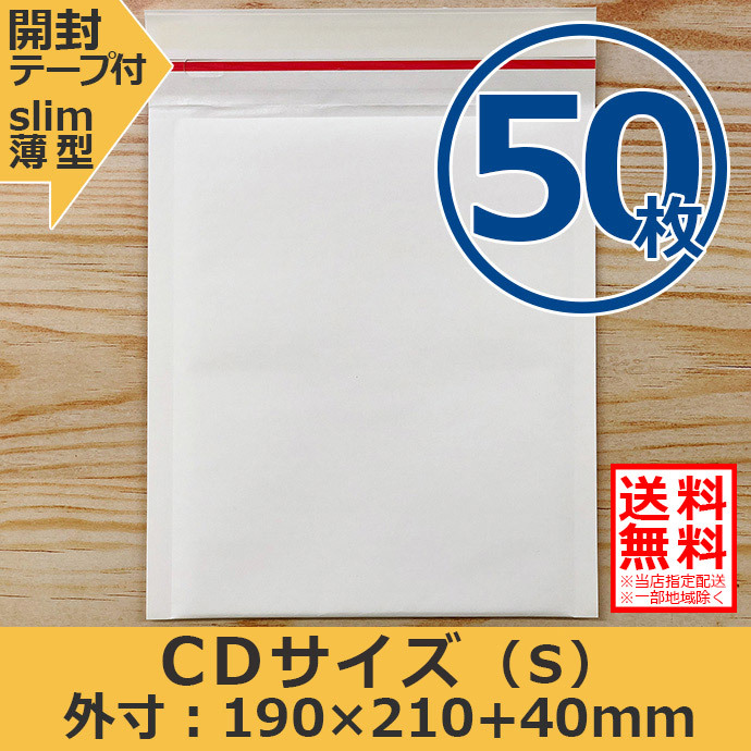 クッション封筒 CDサイズ 50枚セット S 開封テープ付 スリム プチプチ袋 緩衝材 薄型 封筒 送料無料