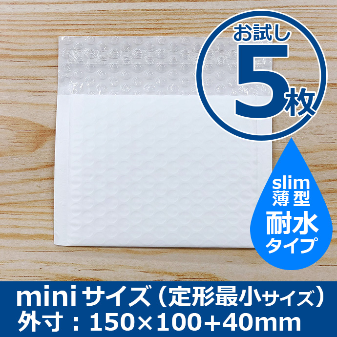 クッション封筒 miniサイズ 定型最小サイズ お試し5枚 耐水タイプ スリム プチプチ袋 緩衝材 薄型 封筒 ポスト投函配送送料無料
