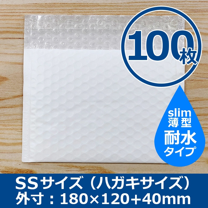 クッション封筒 耐水タイプ SSサイズ ハガキサイズ 100枚 スリム プチプチ袋 緩衝材 薄型 封筒 送料無料(一部地域を除く)