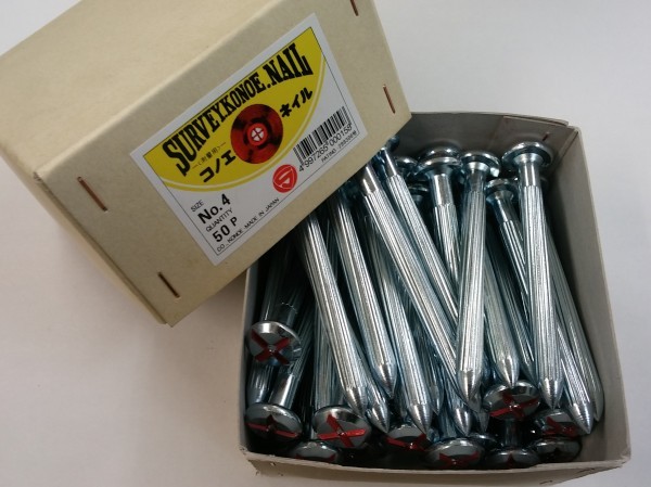 コノエネイル No.4 (50本入) L=105mm 50g 測量鋲 釘 測量ポイント 標示 砂利道用 土地家屋調査