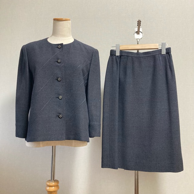 | 実寸サイズ | (トップス)肩幅約 39cm・袖丈約 48cm・着丈約 54cm・胸囲約 52cm×2 (スカート)ウェスト約 32cm×2・スカート丈約 62cm(スリット丈約 11cm) |