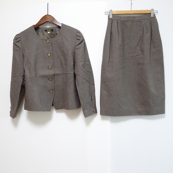 商品名(タイトル):#wnc レリアン Leilian スカートスーツ 7 茶系 セットアップ ノーカラー 美品 タグ付き レディース [811318]