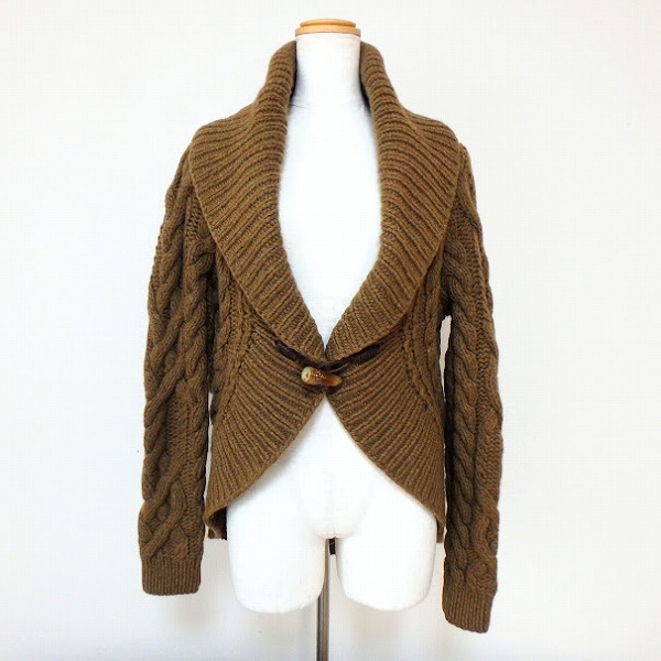 #wnc ラルフローレン RalphLauren ジャケット M 茶 ニット ケーブル編み カシミヤ混 アンゴラ混 レディース [893536]
