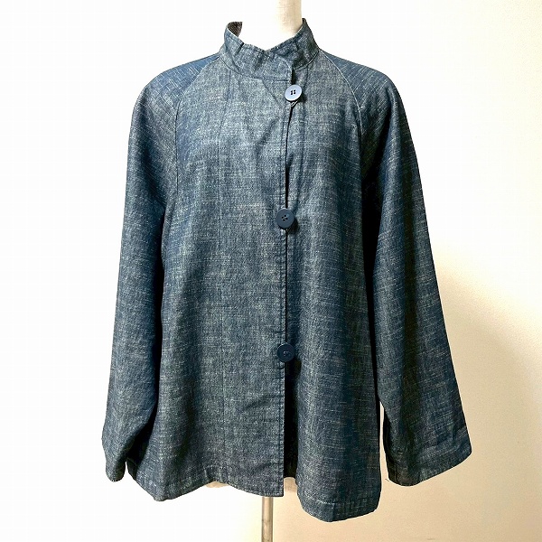 商品名(タイトル):#anc 群言堂 石見銀山 グンゲンドウ ジャケット 紺系 スタンドカラー デニム調 薄手 美品 レディース [940877]