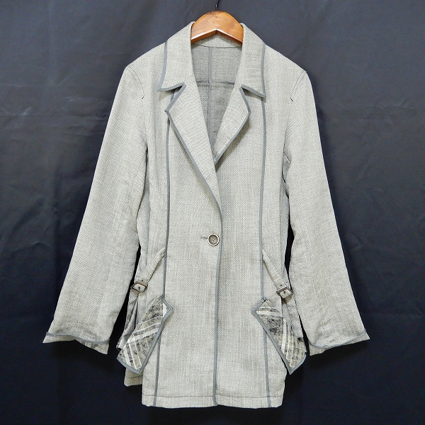 商品名(タイトル):#anc ヒロコビス HIROKOBIS ジャケット 9 グレー系 白 薄手 パイピング レディース [942829]
