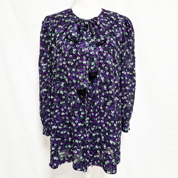 | 商品コメント | リボンタイは取り外しできません。トップス留め具部分はボタン一箇所となっております。やや透け感あるお品です。 |