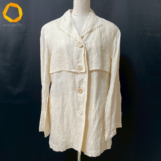 商品名(タイトル):#spc PERMANENTE ペルマネンテ イッセイミヤケ ISSEYMIYAKE ジャケット 2 アイボリー 麻混 ボタン 美品 レディース [961223]